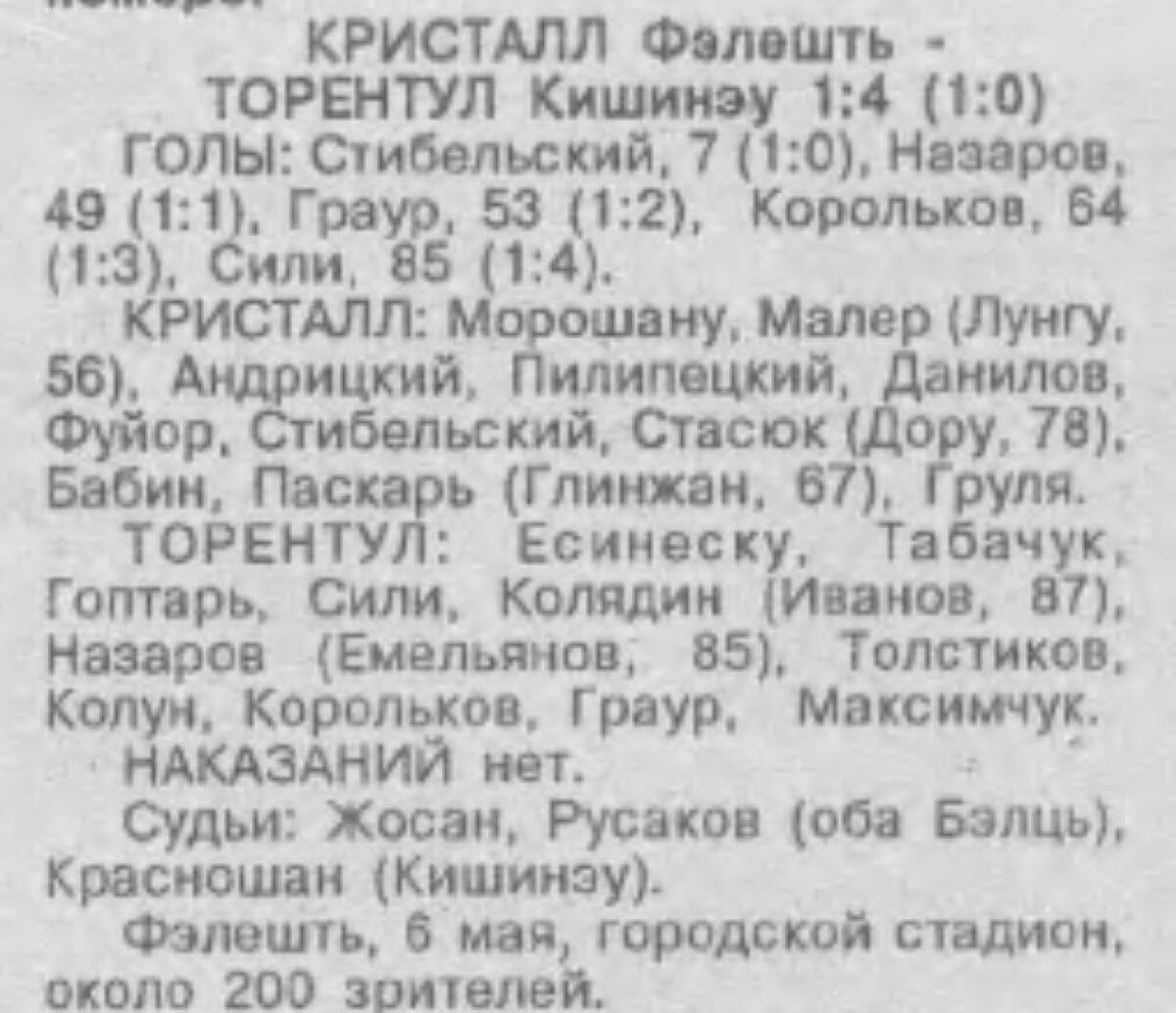 «Кристалул» Фалешты - «Торентул» Кишинёв - 1:4