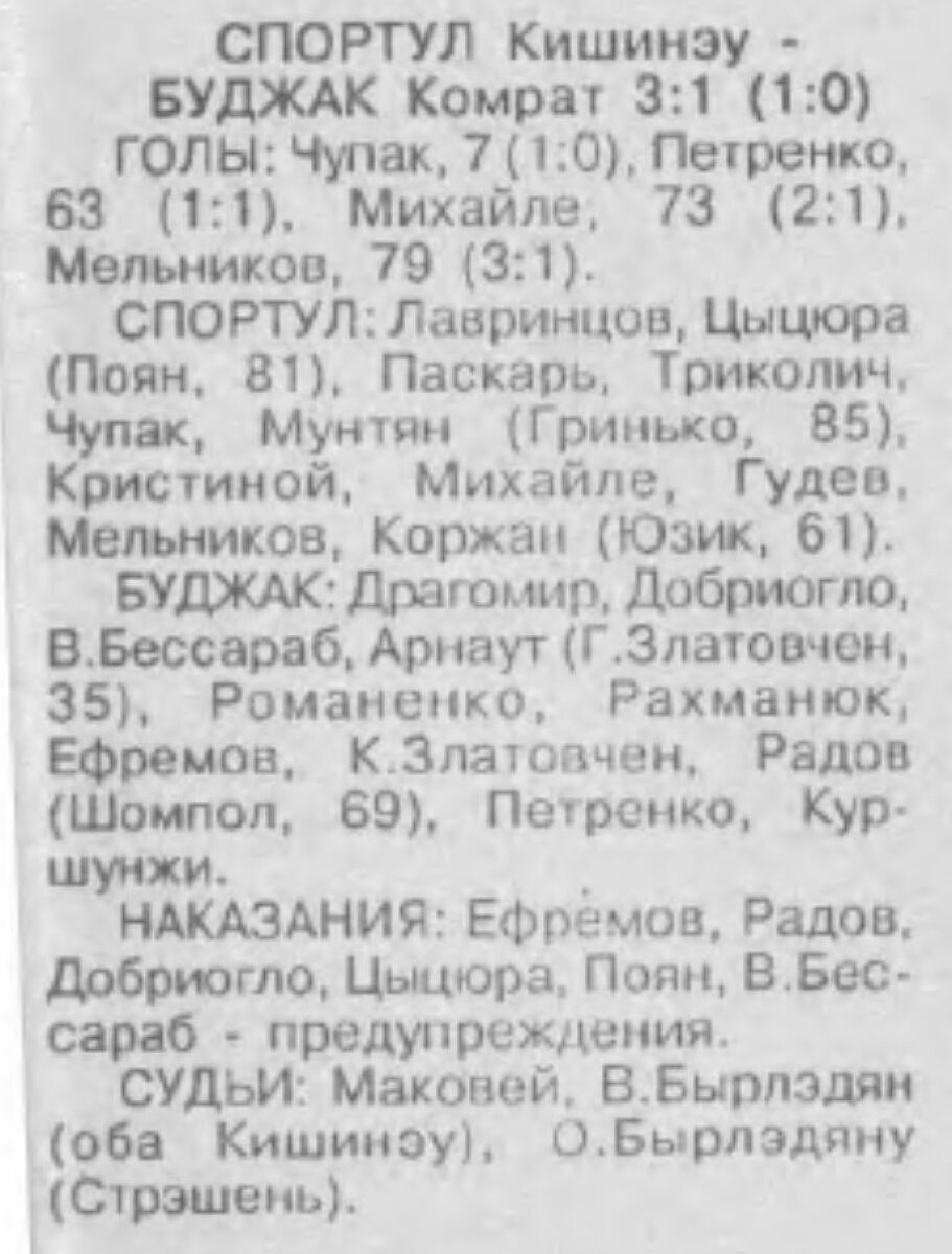 «Спортул-Студенцеск» Кишинёв - «Буджак» Комрат - 3:1