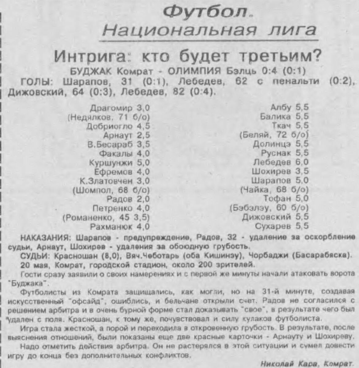 «Буджак» Комрат - «Олимпия» Бельцы - 0:4