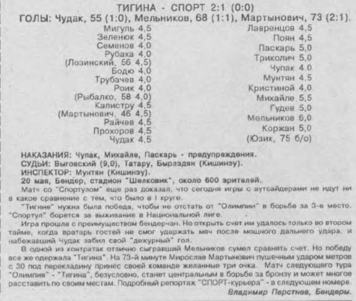 «Тигина» Бендеры - «Спортул-Студенцеск» Кишинёв - 2:1