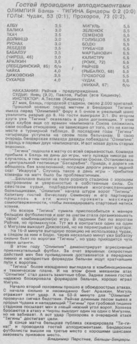 «Олимпия» Бельцы - «Тигина» Бендеры - 0:2