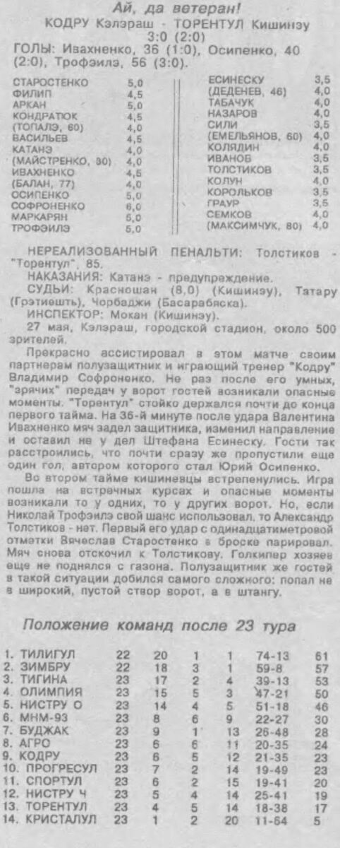 «Кодру» Калараш - «Торентул» Кишинёв - 3:0