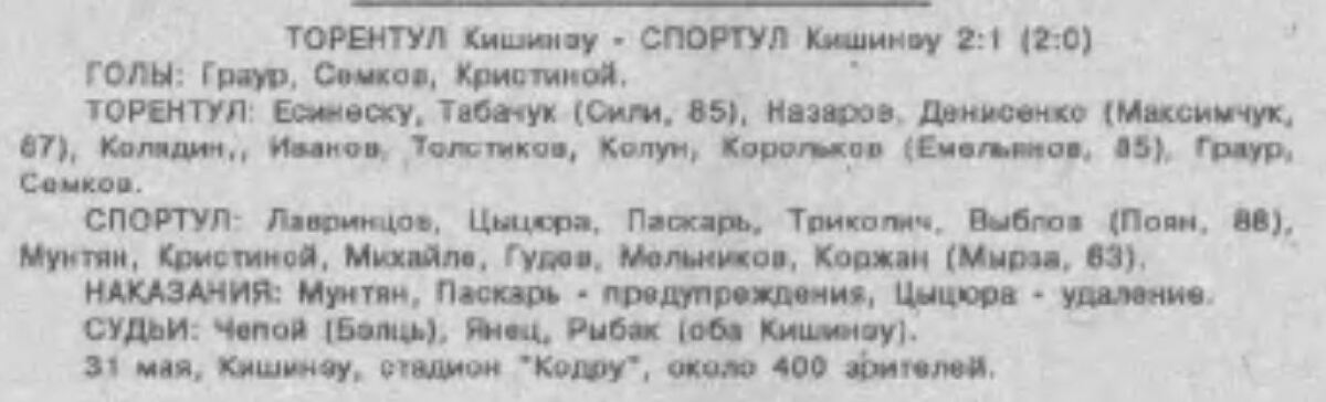 «Торентул» Кишинёв - «Спортул-Студенцеск» Кишинёв - 2:1