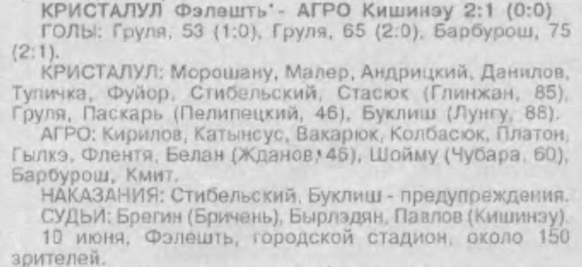«Кристалул» Фалешты - «Агро» Кишинёв - 2:1