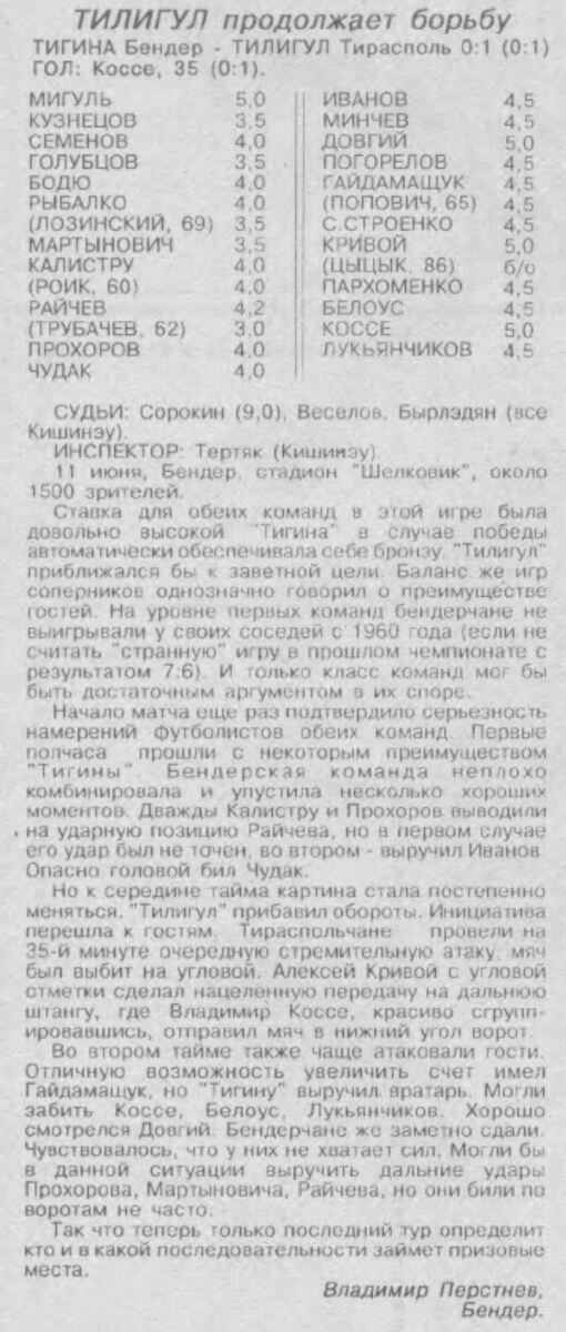 «Тигина» Бендеры - «Тилигул» Тирасполь - 0:1