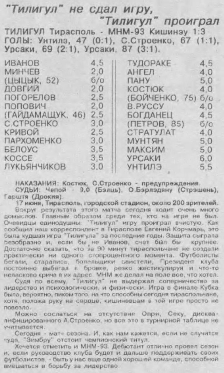 «Тилигул» Тирасполь - «МХМ-93» Кишинёв - 1:3