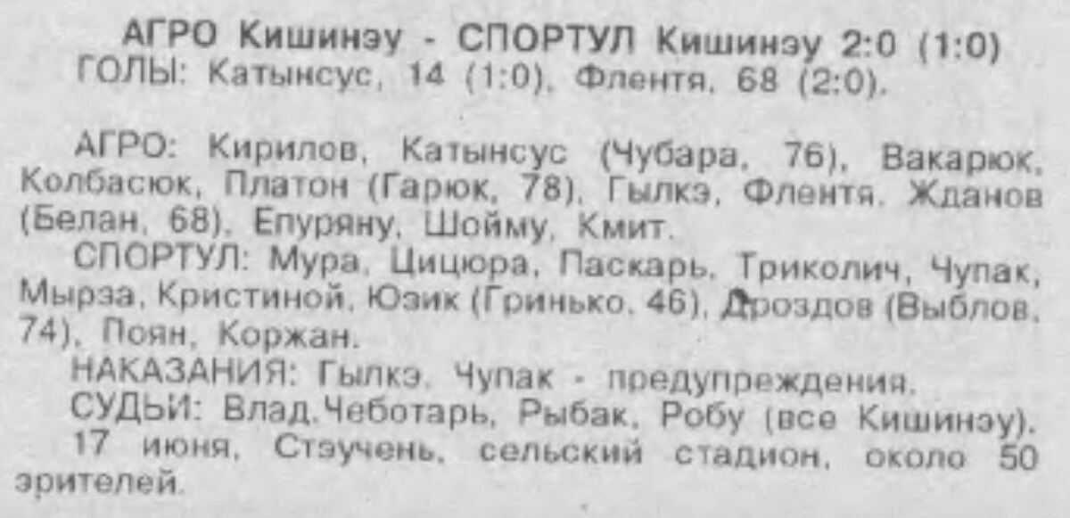 «Агро» Кишинёв - «Спортул-Студенцеск» Кишинёв - 2:0