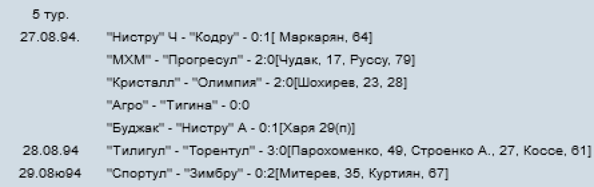Чемпионат Молдавии 1994/95. Национальная дивизия