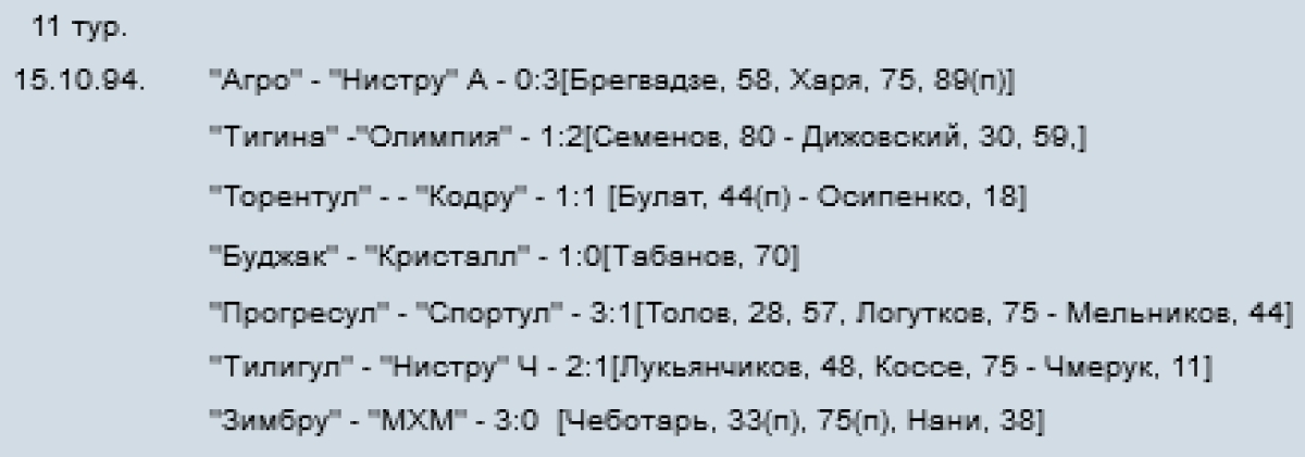 Чемпионат Молдавии 1994/95. Национальная дивизия