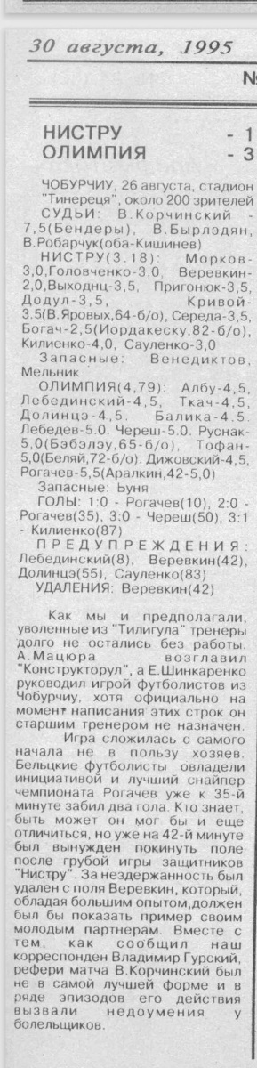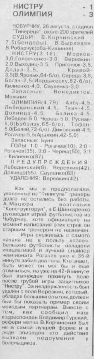 «Нистру» Чобурчи - «Олимпия» Бельцы - 1:3
