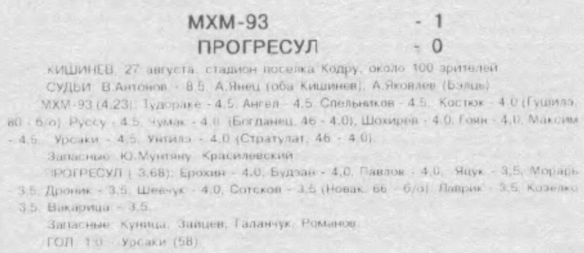 «МХМ-93» Кишинёв - «Прогресул» Бричаны - 1:0