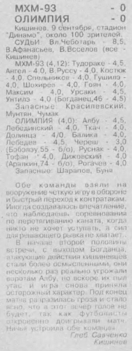 «МХМ-93» Кишинёв - «Олимпия» Бельцы - 0:0