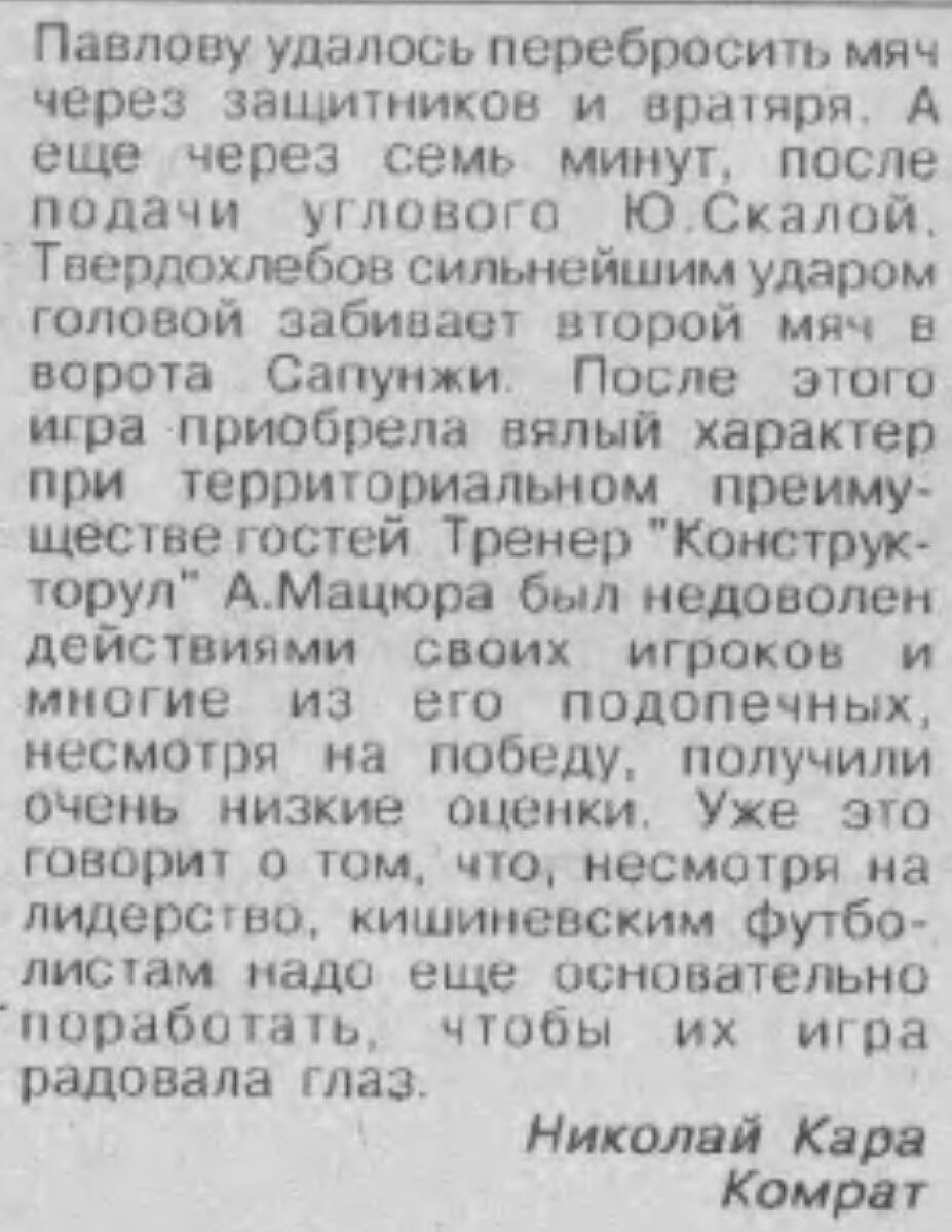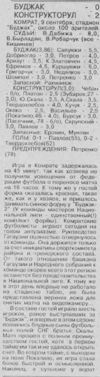 «Буджак» Комрат - «Конструкторул» Кишинёв - 0:2