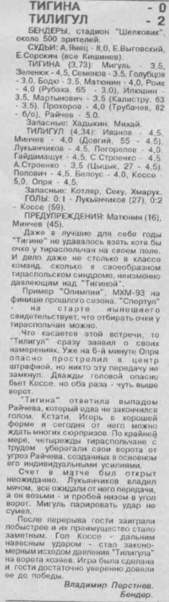 «Тигина» Бендеры - «Тилигул» Тирасполь - 0:2