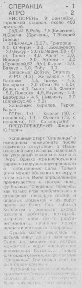 «Сперанца» Ниспорены - «Агро» Кишинёв - 1:2