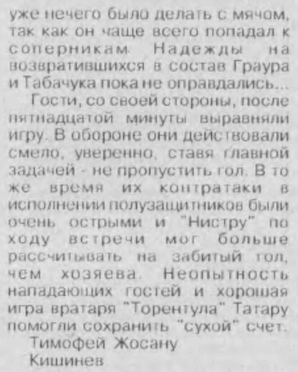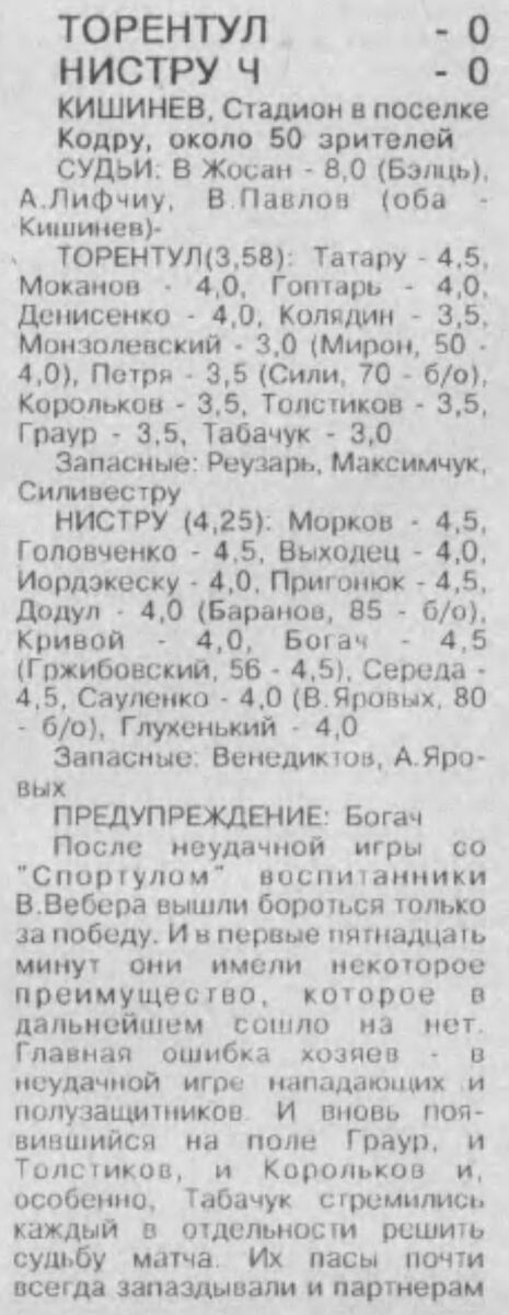 «Торентул» Кишинёв - «Нистру» Чобурчи - 0:0