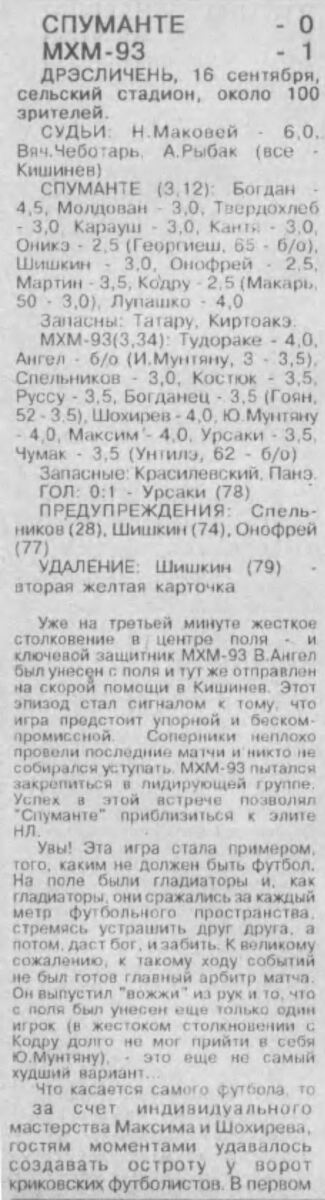 «Спуманте» Криково - «МХМ-93» Кишинёв - 0:1