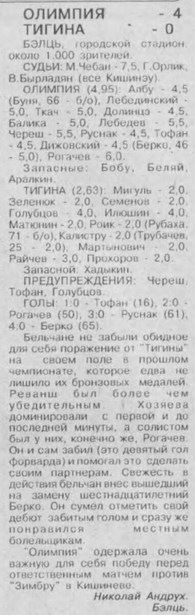 «Олимпия» Бельцы - «Тигина» Бендеры - 4:0