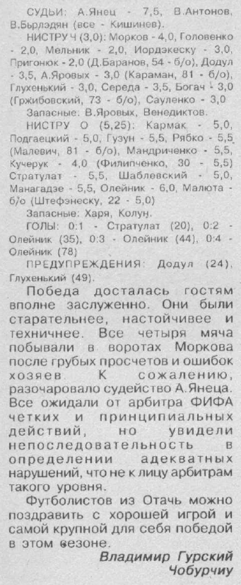 «Нистру» Чобурчи - «Нистру» Атаки - 0:4