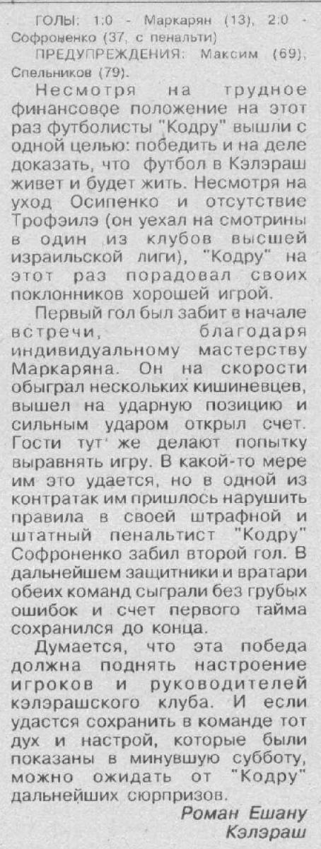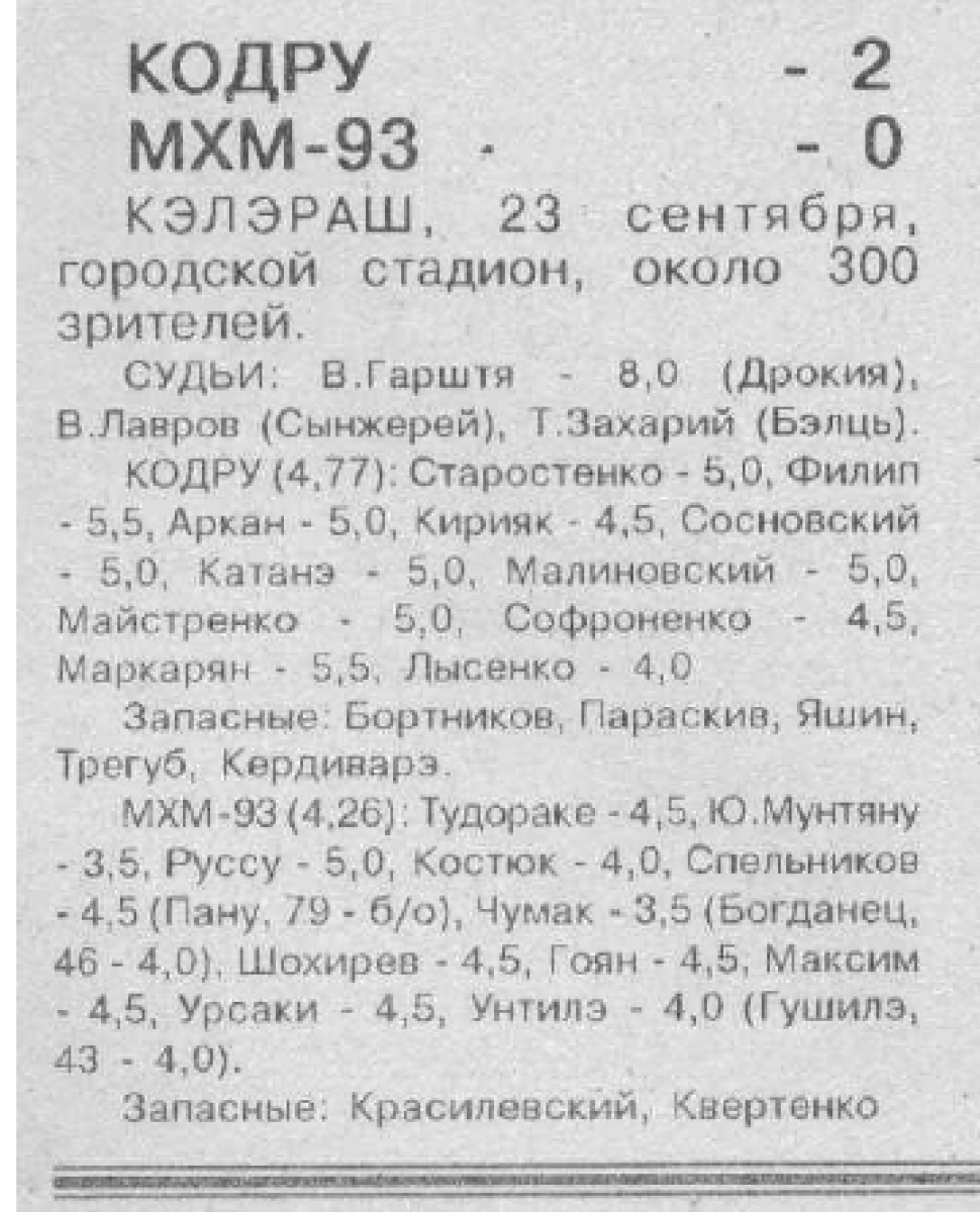 «Кодру» Калараш - «МХМ-93» Кишинёв - 2:0