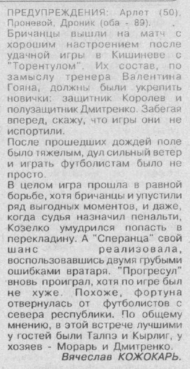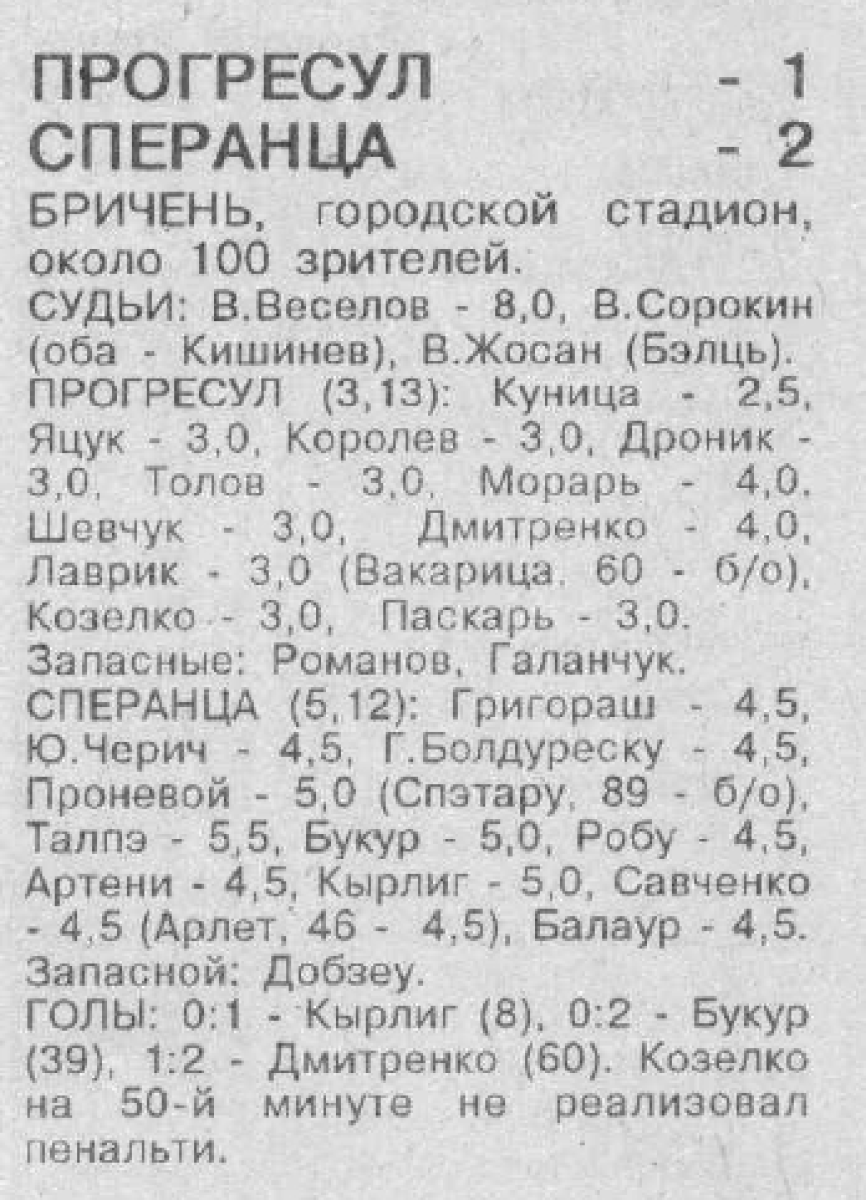 «Прогресул» Бричаны - «Сперанца» Ниспорены - 1:2