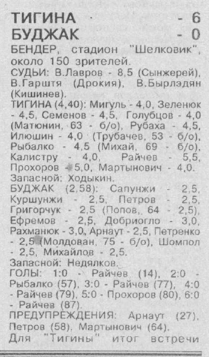 «Тигина» Бендеры - «Буджак» Комрат - 6:0