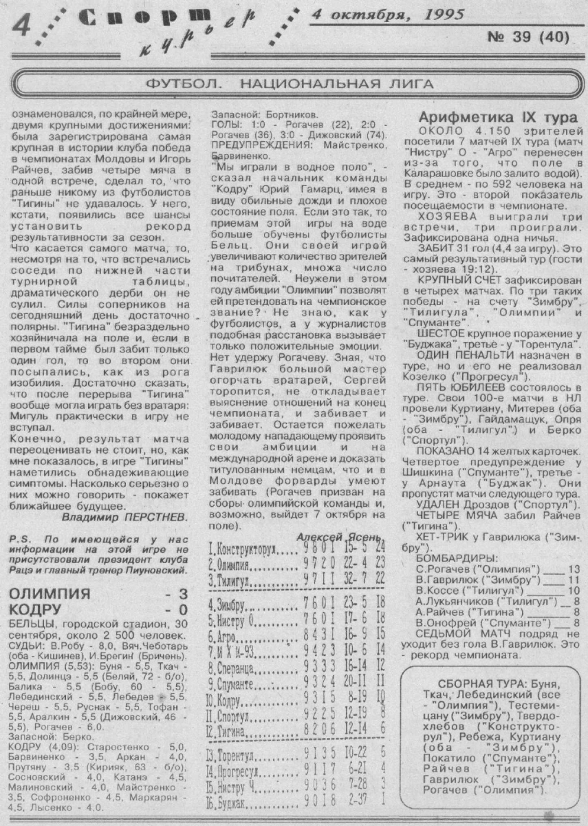 Чемпионат Молдавии 1995/96. Национальная дивизия