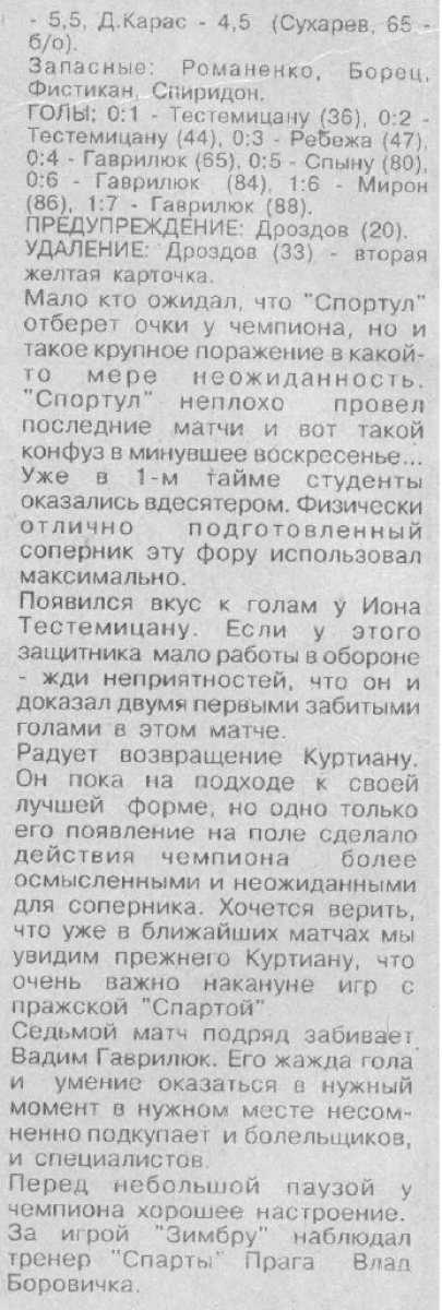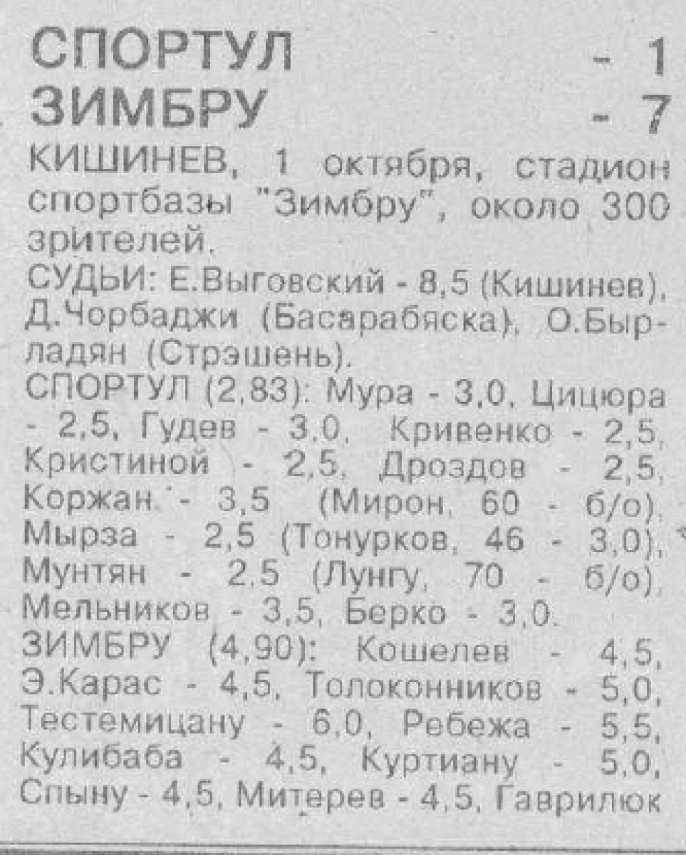 «Спортул-Студенцеск» Кишинёв - «Зимбру» Кишинёв - 1:7