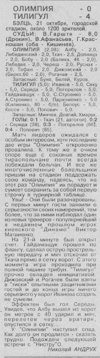 «Олимпия» Бельцы - «Тилигул» Тирасполь - 0:4