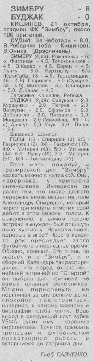 «Зимбру» Кишинёв - «Буджак» Комрат - 8:0