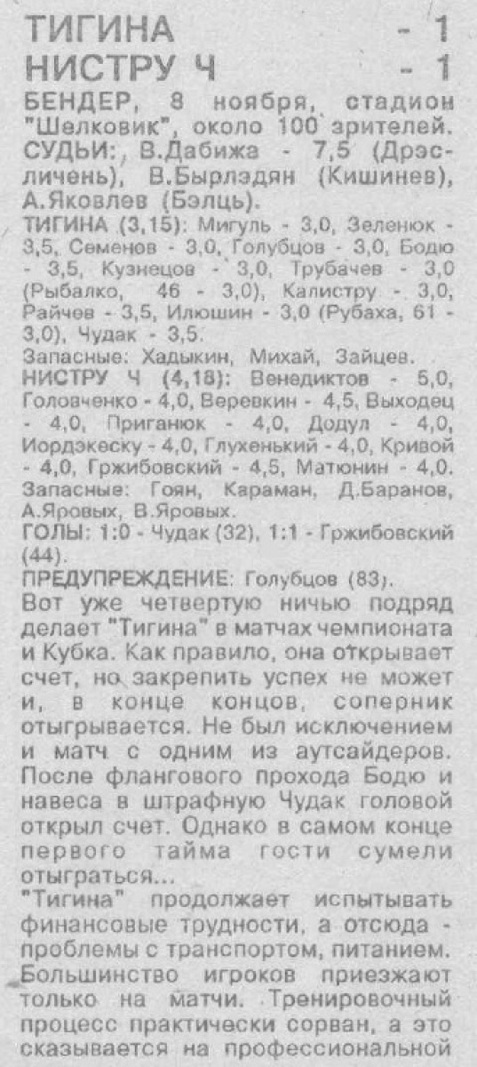 «Тигина» Бендеры - «Нистру» Чобурчи - 1:1