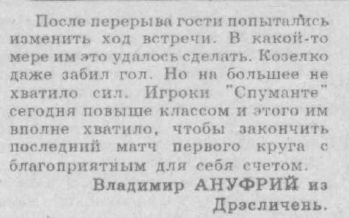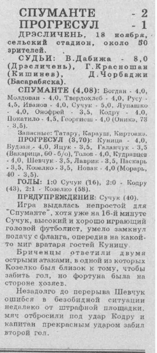 «Спуманте» Криково - «Прогресул» Бричаны - 2:1