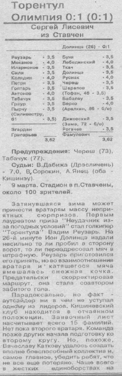 «Торентул» Кишинёв - «Олимпия» Бельцы - 0:1