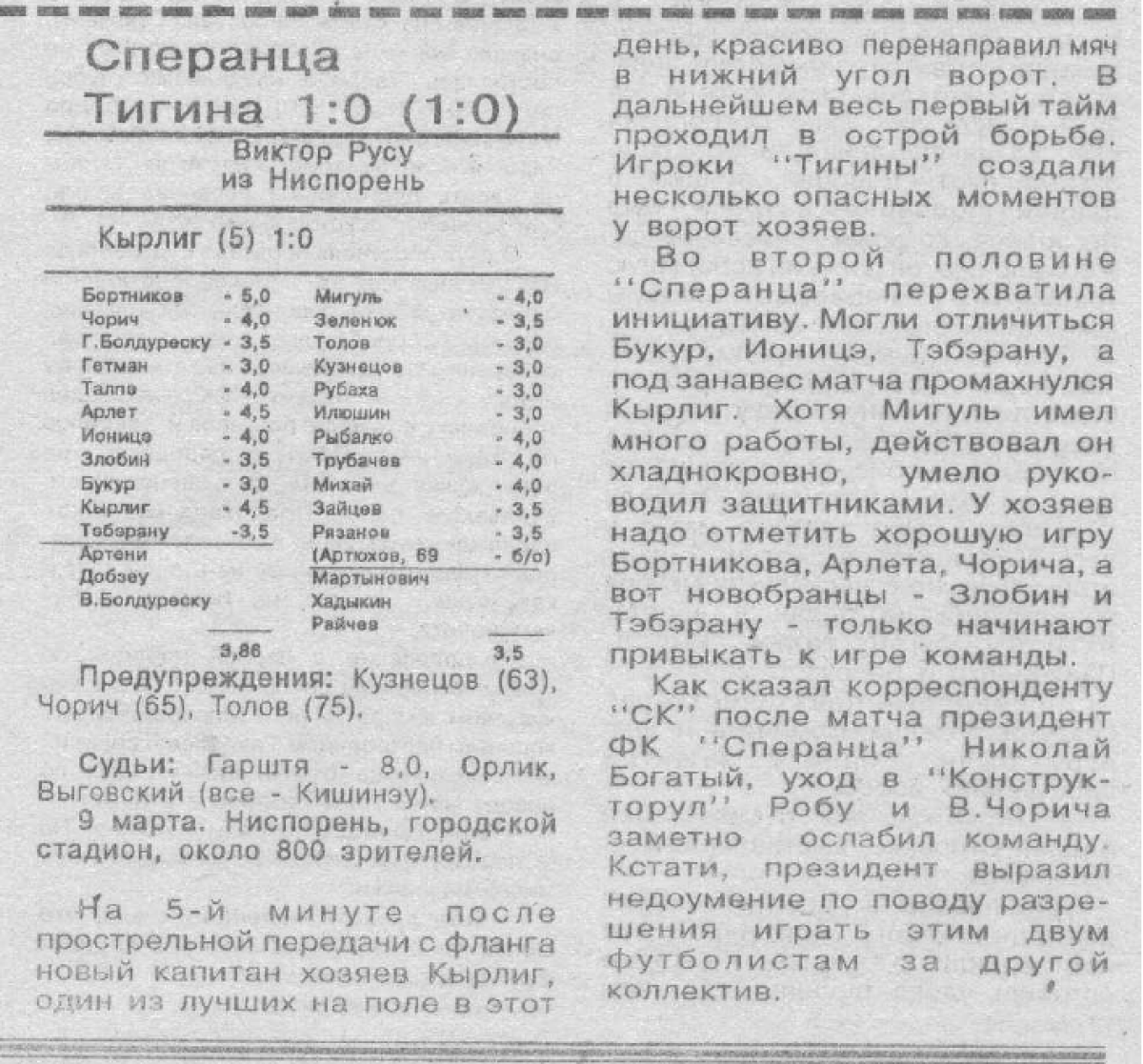 «Сперанца» Ниспорены - «Тигина» Бендеры - 1:0