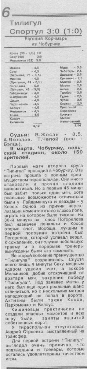 «Тилигул» Тирасполь - «Спортул-Студенцеск» Кишинёв - 3:0