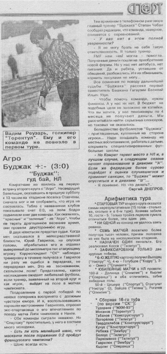 «Агро» Кишинёв - «Буджак» Комрат - 6:0