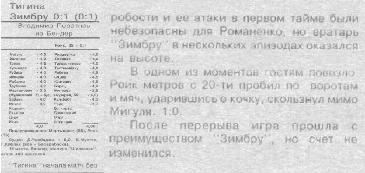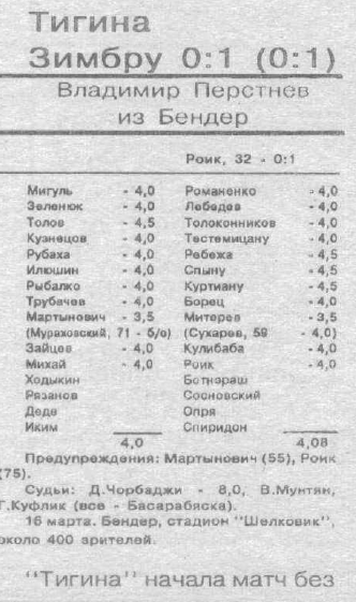 «Тигина» Бендеры - «Зимбру» Кишинёв - 0:1