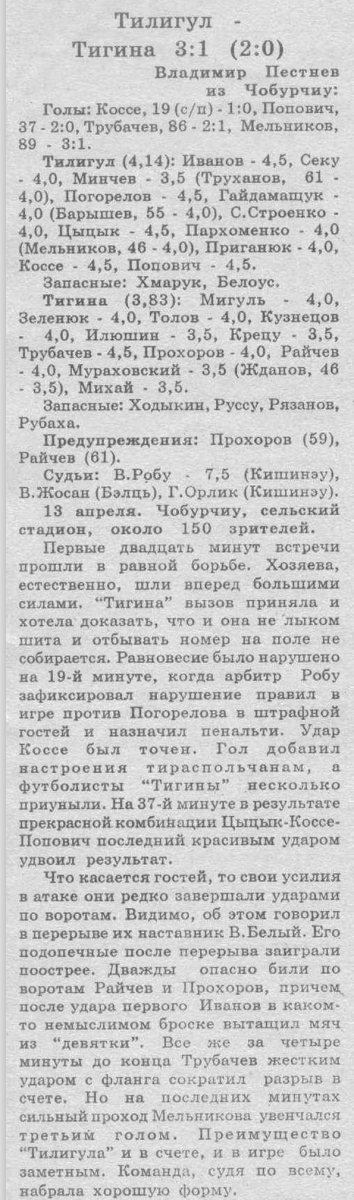 «Тилигул» Тирасполь - «Тигина» Бендеры - 3:1