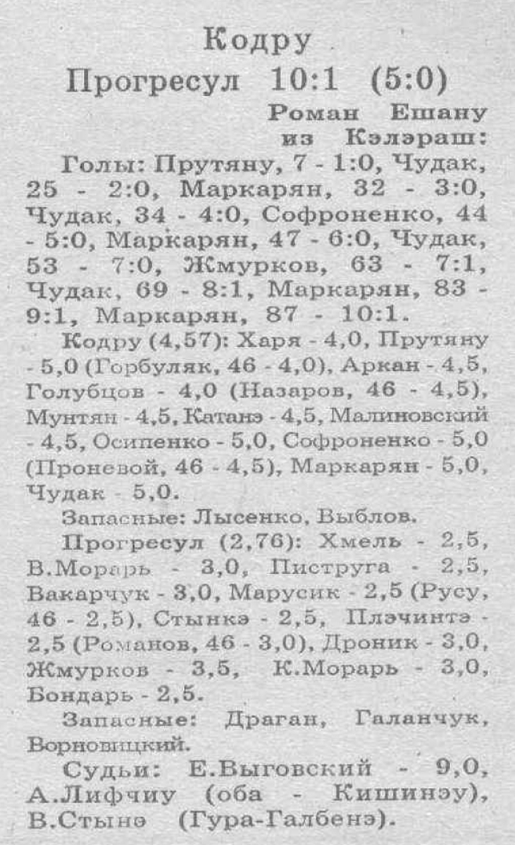 «Кодру» Калараш - «Прогресул» Бричаны - 10:1