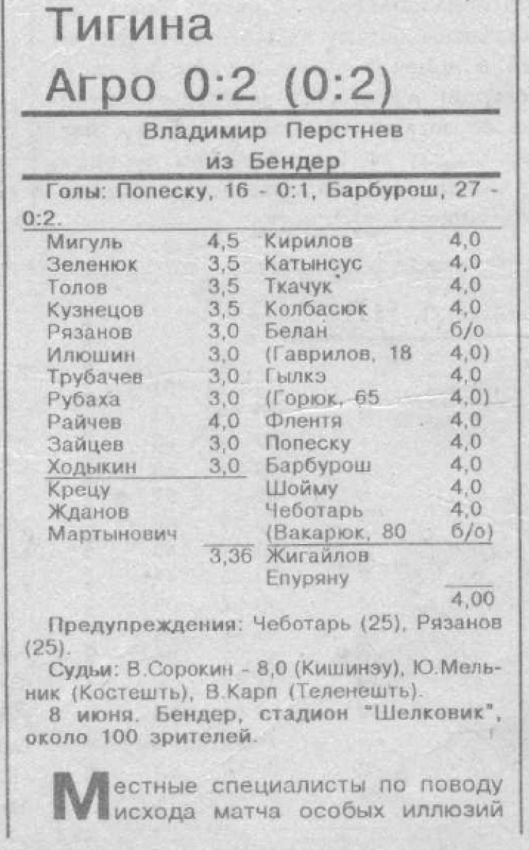 «Тигина» Бендеры - «Агро» Кишинёв - 0:2