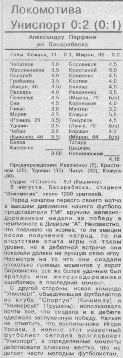 «Локомотива» Бессарабка - «Униспорт» Кишинёв - 0:2