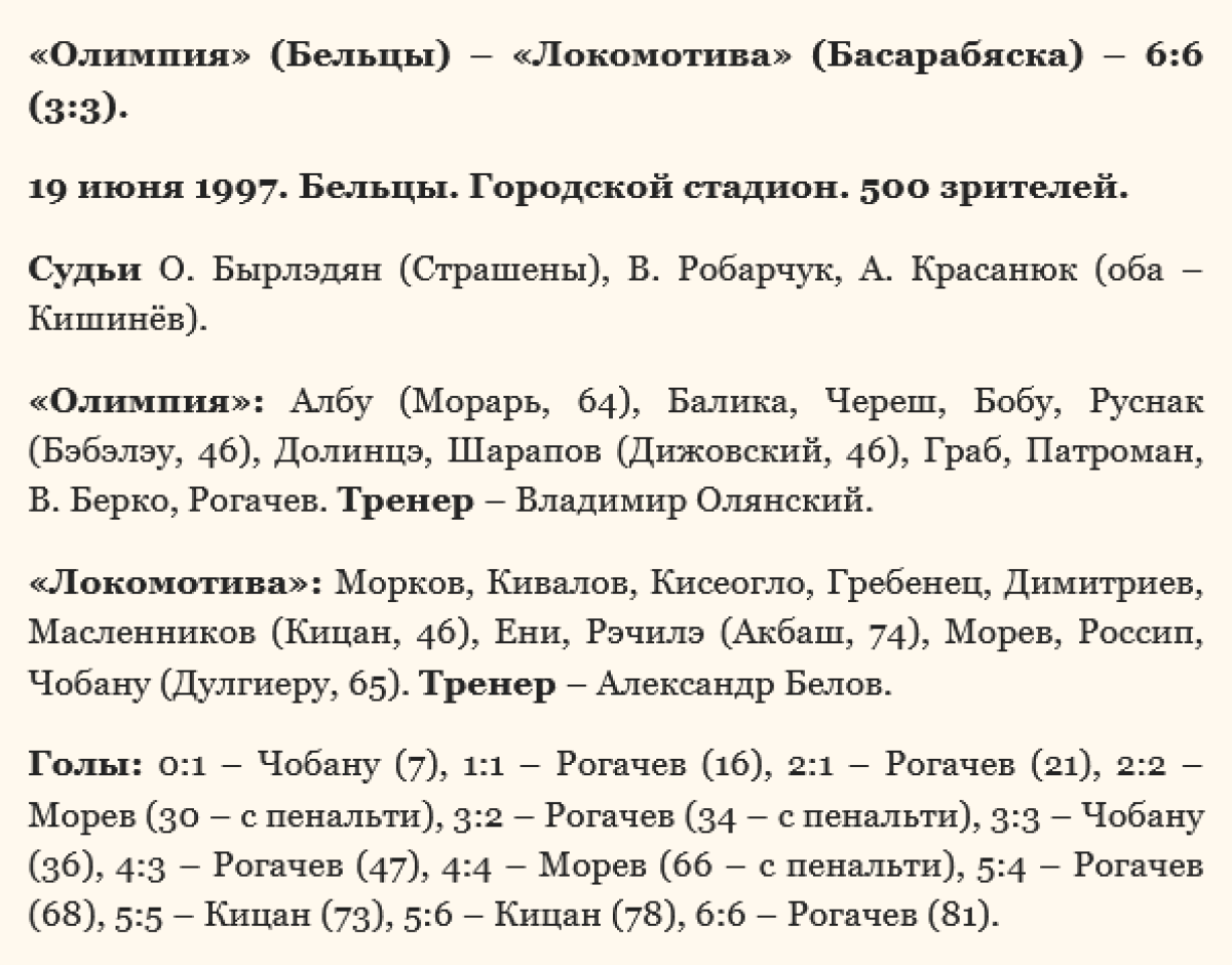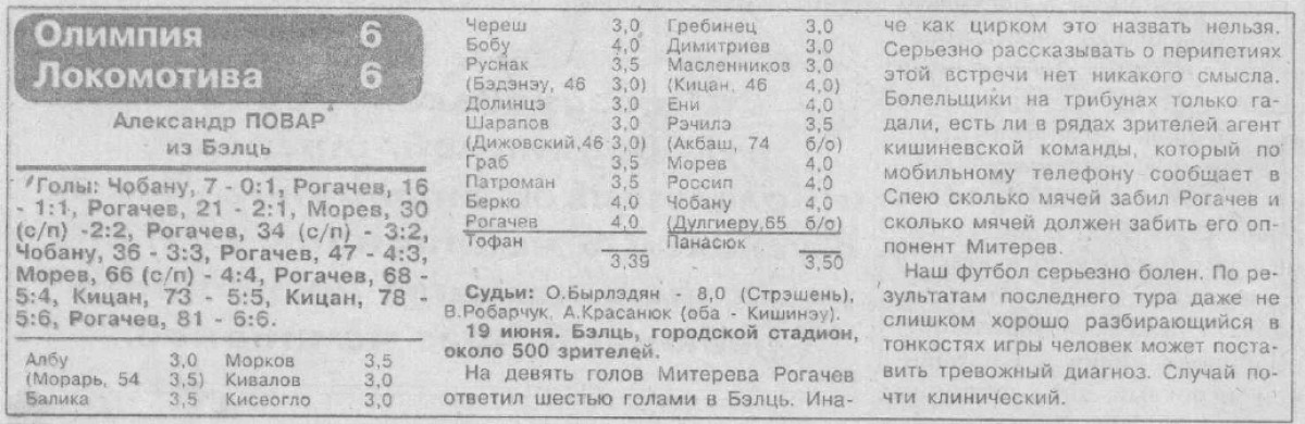 «Олимпия» Бельцы - «Локомотива» Бессарабка - 6:6