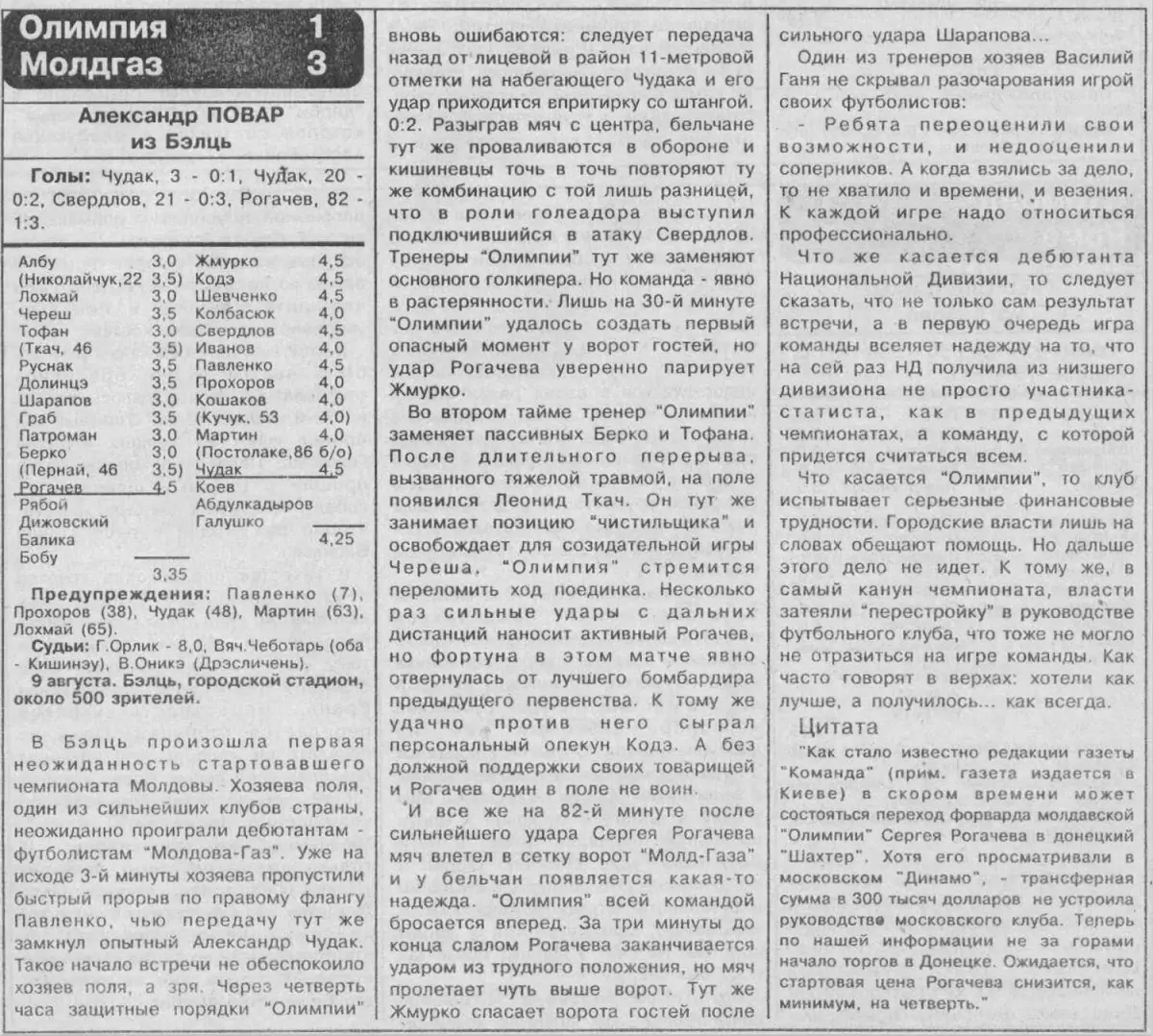«Олимпия» Бельцы - «Молдова-ГАЗ» Кишинёв - 1:3