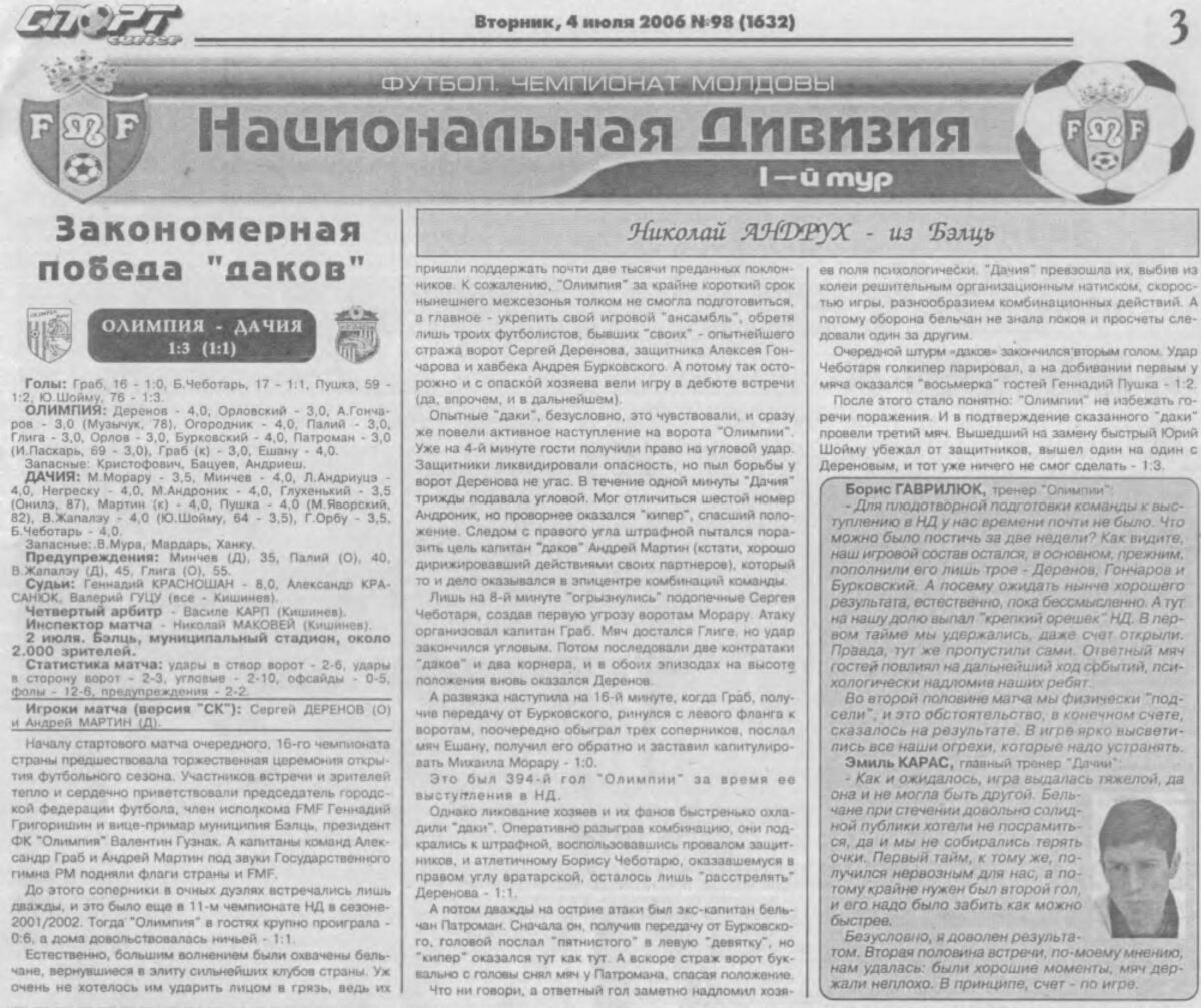 «Олимпия» Бельцы - «Дачия» Кишинёв - 1:3