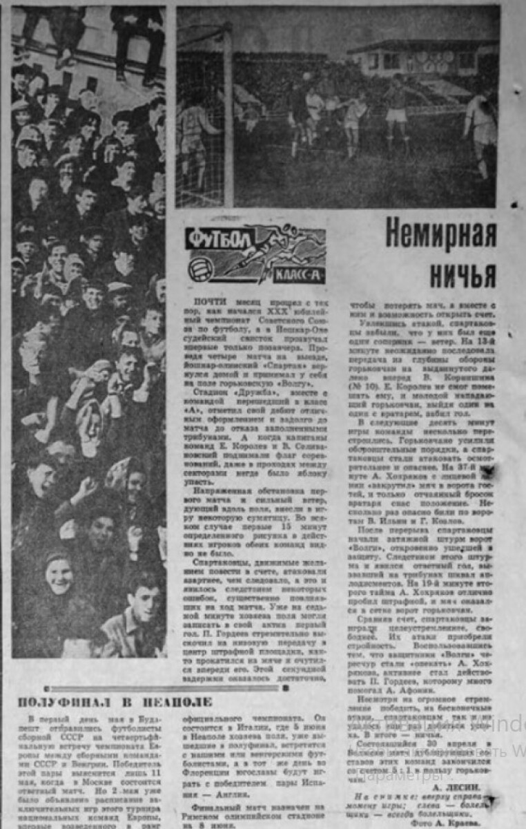 «Спартак» Йошкар-Ола - «Волга» Горький - 1:1