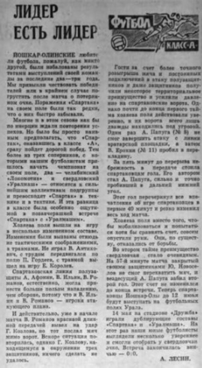 «Спартак» Йошкар-Ола - «Уралмаш» Свердловск - 0:2