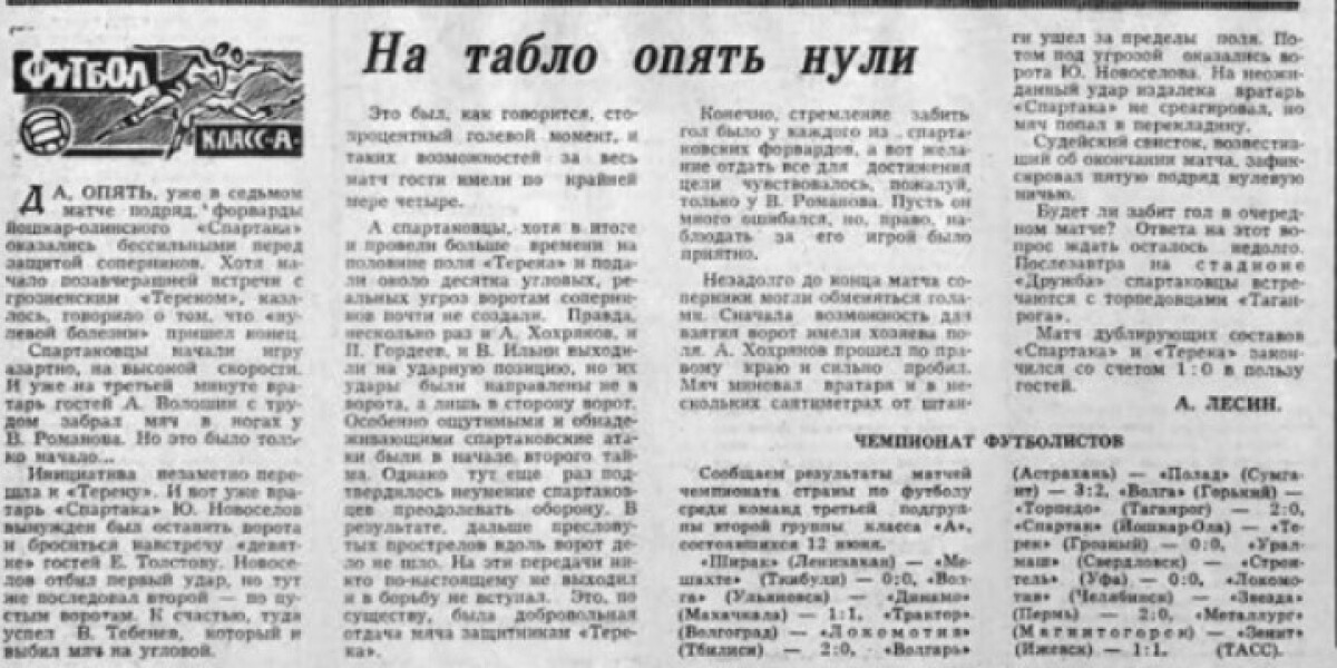 «Спартак» Йошкар-Ола - «Терек» Грозный - 0:0