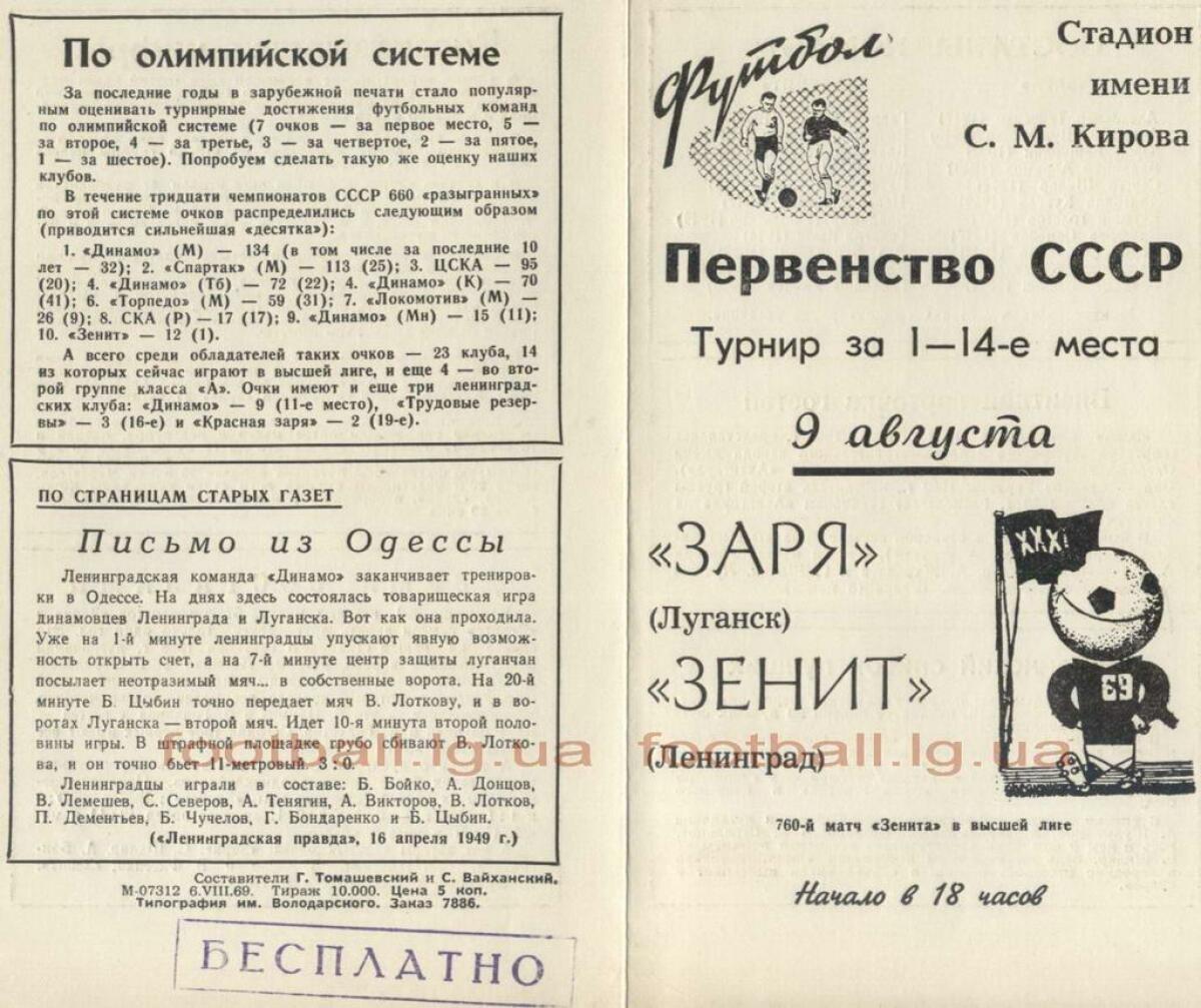 «Зенит» Ленинград - «Заря» Луганск - 1:1