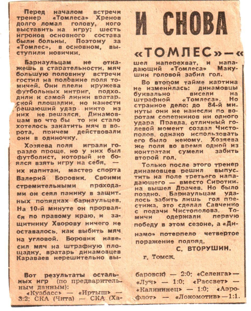 «Томлес» Томск - «Динамо» Барнаул - 2:1
