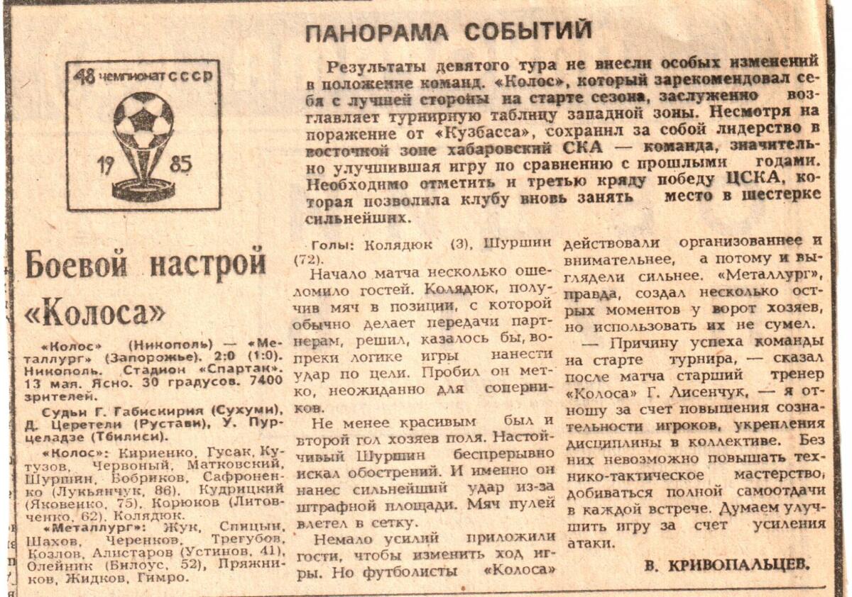 «Колос» Никополь - «Металлург» Запорожье - 2:0
